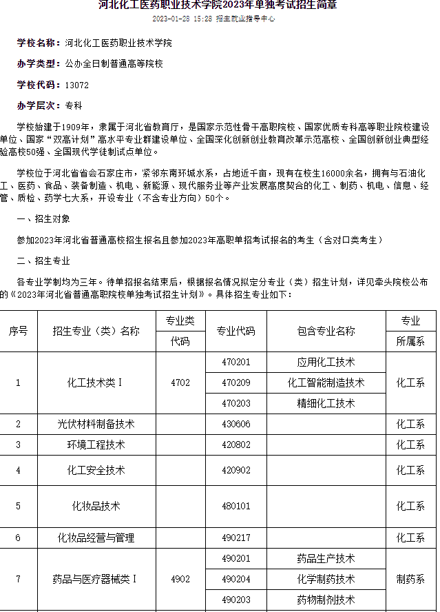 更多详情:河北化工医药职业技术学院2023单独招生考试简章